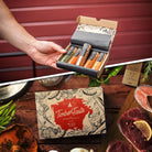 FERTIG ZUM VERSCHENKEN – Das händisch verpackte BBQ Set kommt inkl. 5 toller Rezeptempfehlungen in einer aufwändig gestalteten Grill-Geschenkverpackung und ist so bereit zum Verschenken