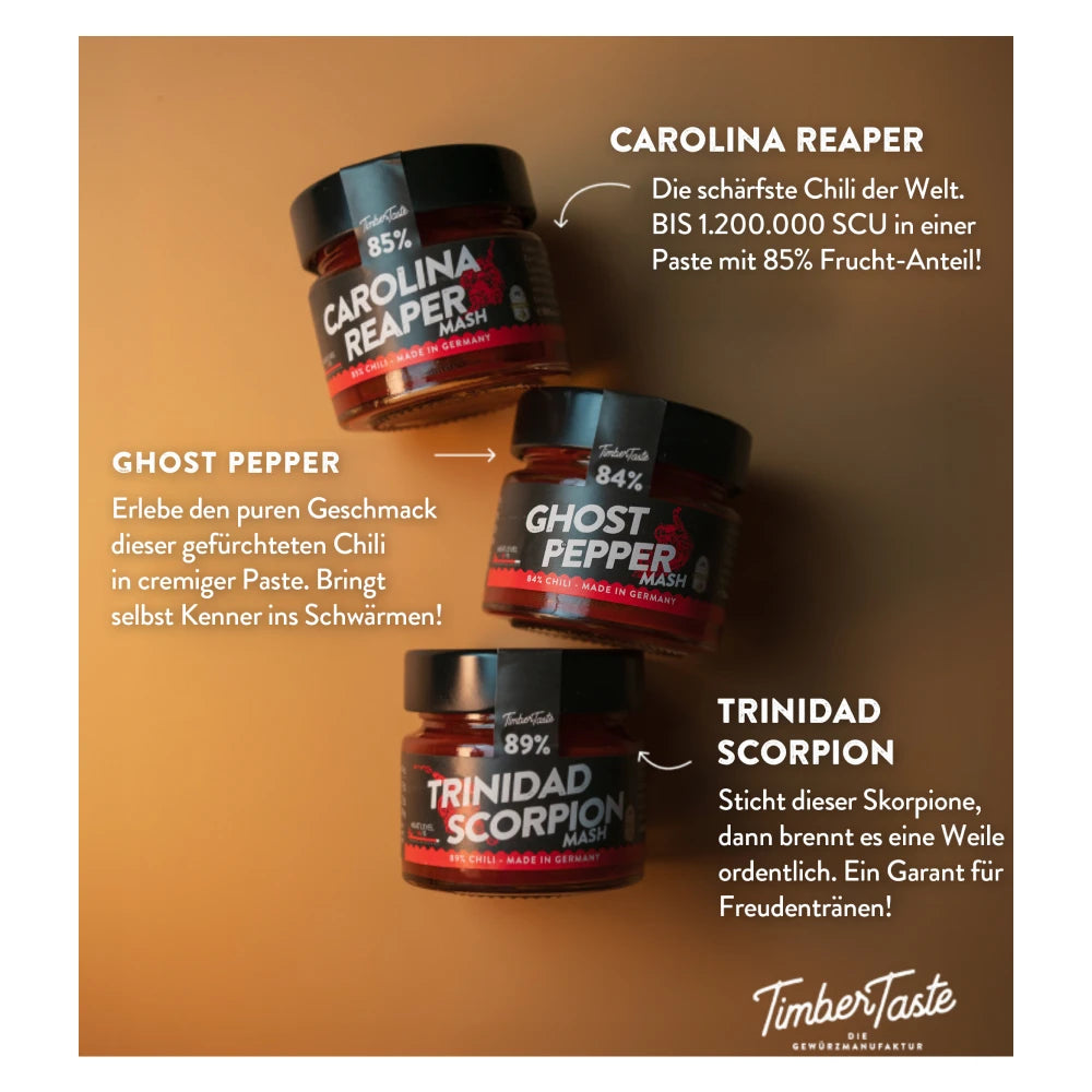 Erlebe den ultimativen Geschmackskick und bringe Deine Kochkunst auf das nächste Level mit den Timber Taste Mash's – eine unverzichtbare Zutat in jeder scharfen Küche.