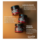 Trinidad Scorpion Mash – Für diejenigen, die das Extreme suchen, ist unser Trinidad Scorpion Mash ein kulinarisches Abenteuer. Sie erreicht beeindruckende 1 Millionen Scoville und verbindet Schärfe mit dem charakteristischen fruchtigen Aroma der Chili. Dieses Mash hebt jede Mahlzeit auf ein neues Niveau des Geschmacks und bietet eine unvergleichliche Intensität, die deinen Gaumen herausfordert und belohnt.