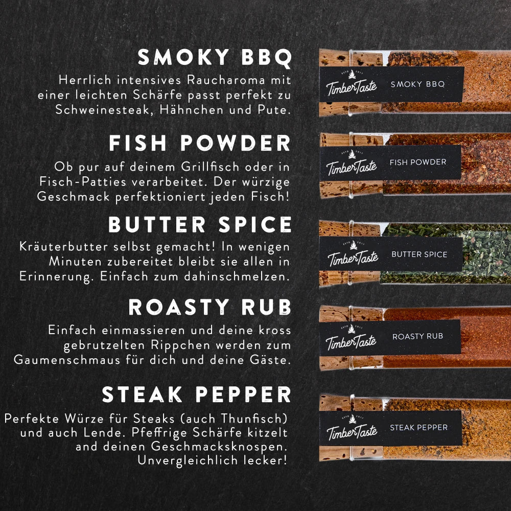 5x BBQ Grillgewürze - Bestseller Geschenkset Genusspaket für Männer