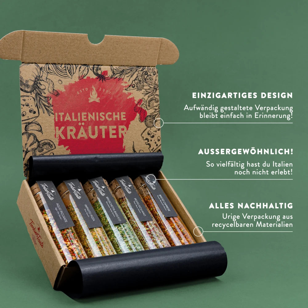 5x Italienische Gewürze - Edles Geschenkset Genusspaket für Männer