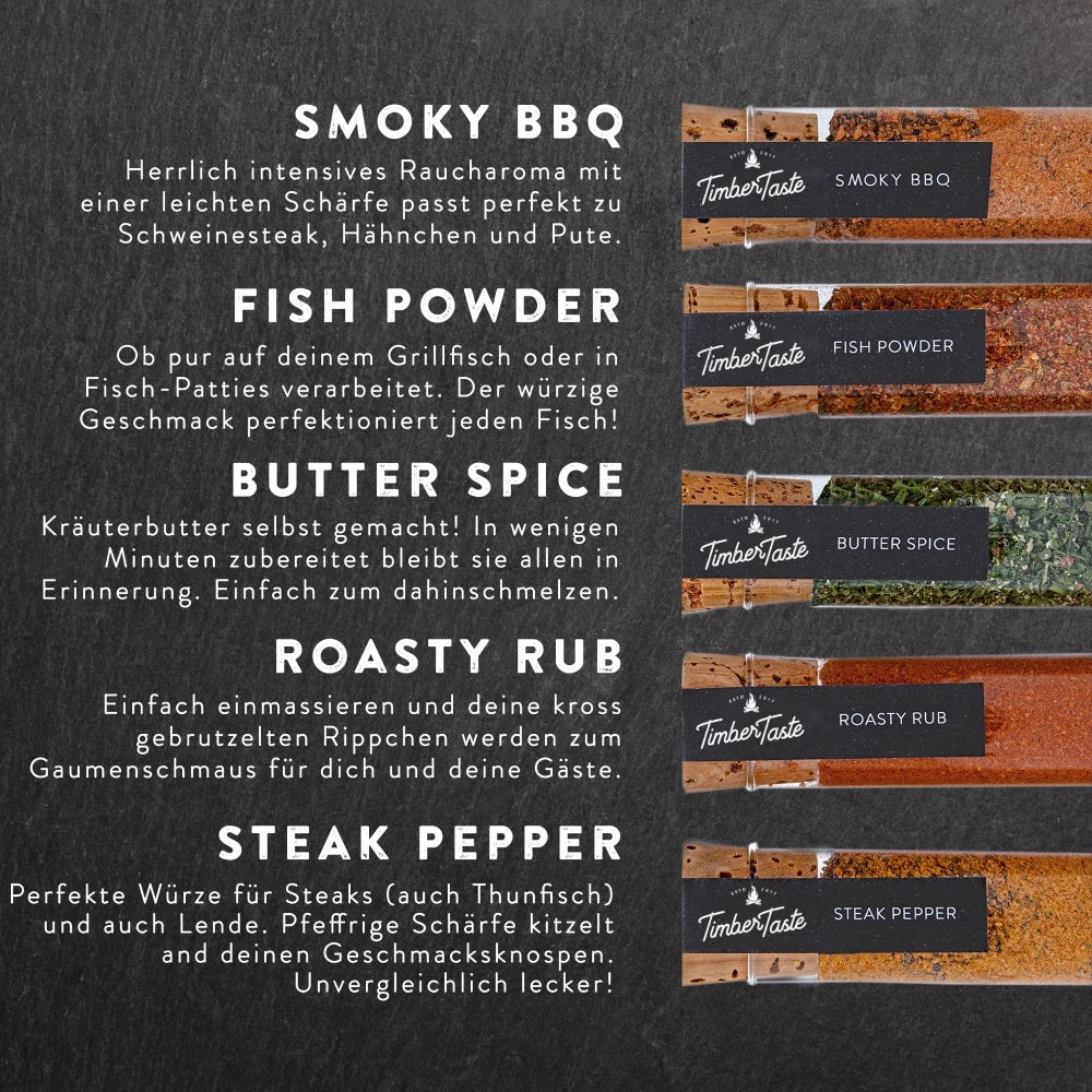 JETZT GRILLLIEBHABERINNEN BEGEISTERN – Das Grillgewürze Geschenkset mit 5 erlesenen Gewürzen aus unserer Manufaktur überzeugt jeden Grillmeister.