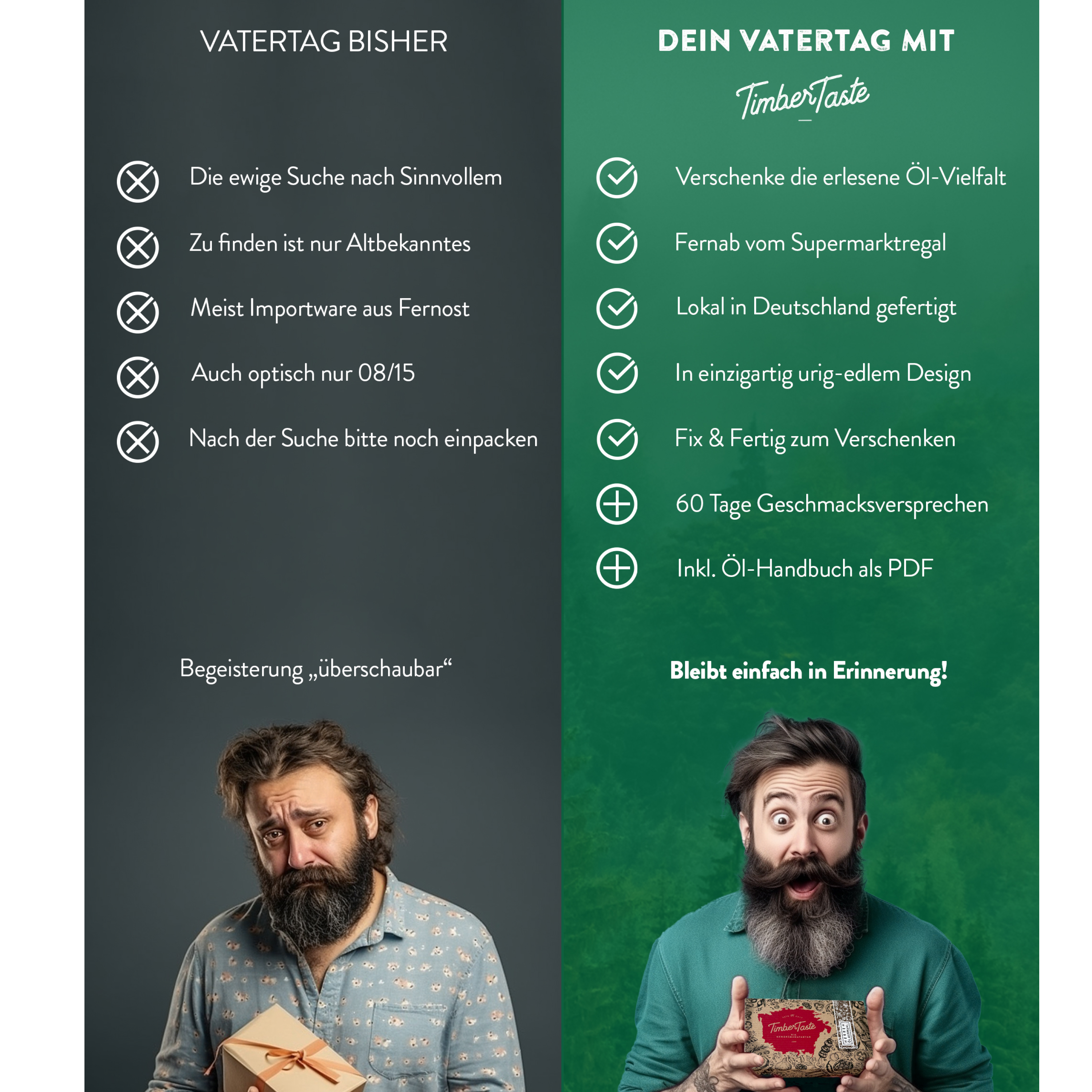 Kennst Du das Gefühl? Es steht Weihnachten, ein Geburtstag oder ein anderes Ereignis vor der Tür und Du weisst einfach nicht was Du schenken sollst? Uns ging es genauso und da wir von der Qualität der verfügbaren Geschenke nicht überzeugt waren, haben wir kurzerhand unsere eigenen Geschenksets konzipiert. Getrieben von dem Wunsch, Deinen Liebsten ein Lächeln auf den Mund zu zaubern und schöne Momente während des Grillens oder des Kochens gemeinsam zu erleben, bieten wir Dir genau das. Wir sind davon überzeugt, mit einem Geschenkset von Timber Taste schenkst Du nicht nur eine kleine Aufmerksamkeit, sondern besondere Momente, welche in Erinnerung bleiben. Dafür steht mein Team und ich jeden Tag auf!
